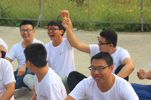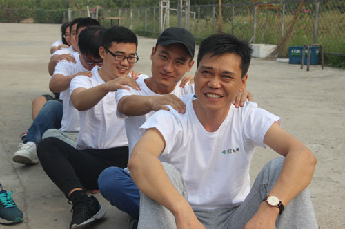 大家分成兩組坐在地上,為自己前方的人捏肩捶背,然后轉(zhuǎn)身向后輪換。游戲迅速消除了員工們的陌生感,營(yíng)造了很好的拓展氛圍,奠定了團(tuán)隊(duì)建設(shè)的基礎(chǔ)。