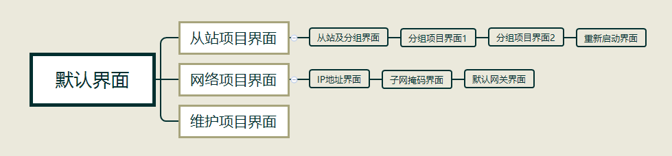 在在默認界面按動“→”按鍵進入此組界面,此組界面的主要功能為瀏覽設(shè)置從站數(shù)量及分組項目。此組界面的所有子界面皆可瀏覽、設(shè)置。